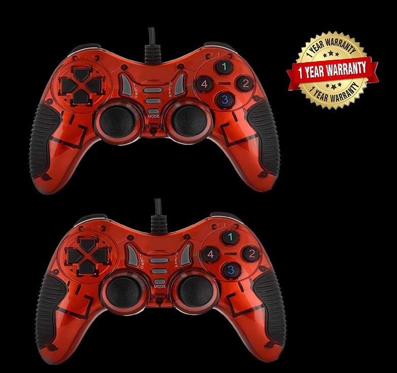 BookYourWish Pair of Dual Vibration USB Wired Controller with LED Indicators for PC Laptop, Pack of 2 Gamepad/Joystick with Dual Vibration, 1 Year Brand Warranty (Red)